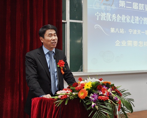 On the afternoon of November 16, President Wang Liping pointed out when giving speech in Ningbo Tianyi Vocational and Technical College, college students should face the reality, establish a correct view of employment, constantly write the new movement of life.