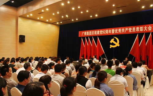 On June 28, Guangbo Group held the 92nd anniversary of Party building and excellent party member commendation congress, solemnly marked the birthday of the Party. The congress commended 9 excellent party members of year 2012, and 6 people formally joined the communist party. Wang Liping, secretary of the Party committee, made the important speech at the meeting. Required all party members have the purpose in mind, receive education, seek innovation, continuously to make new greater achievements.