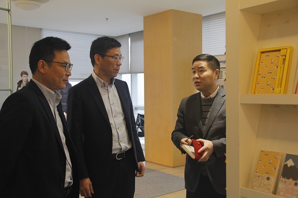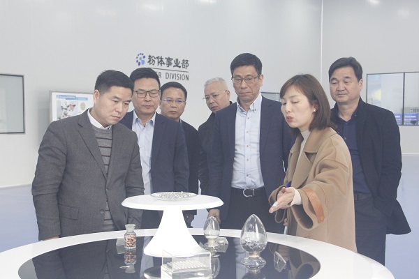 Mao Caisheng first visited the digital production workshop of Guangxin nano company of Guangbo group to learn more about the production process and application fields, and highly praised the company's realization of unmanned production mode. After that, the guests and their party visited the sample center of the headquarters and appreciated Guangbo's active development of cultural and creative student supplies and its continuous stimulation of students' interest in learning.