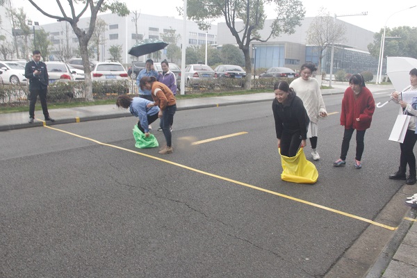 Kangaroo jump, a childhood game, makes us feel as if we were young. We cheer for each other. Although the weather is not beautiful, the rain still doesn't affect everyone's mood! The lively atmosphere infected everyone present.