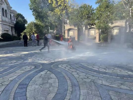 All employees of Guangbo yujingwan garden set up an emergency team to carry out fire drill, so that all employees can understand and learn to use fire equipment. The organization ability, command ability and emergency response ability of the emergency team have been exercised in this fire drill.