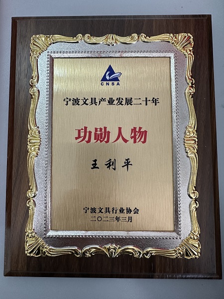 Wang Liping, chairman of Guangbo Group, has been awarded the title of meritorious figure in the development of Ningbo stationery industry for 20 Years. Guangbo Group has been awarded the titles of Top 10 Manufacturing Enterprises, Top 10 Export Enterprises, and Demonstration Enterprises of "Counterpart Assistance and Mountain Sea Cooperation" in Ningbo Stationery Industry.