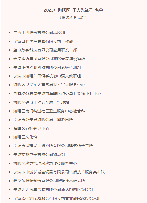 On April 25th, the "Dawn Becomes Torch and Craftsmanship Builds Dreams" celebration of the "May Day" International Labor Day and the Advanced Model Worker Commendation Conference were held in Haishu district. The quality department of Guangbo Group Co., Ltd. was awarded the "Worker Pioneer" advanced collective in Haishu district in 2023.