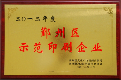 日前,廣博印刷公司被授予2012年度寧波市鄞州區(qū)示范印刷企業(yè)。