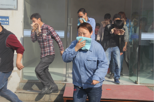 為了讓大家能親身體驗逃生現(xiàn)場,公司組織了參訓人員進行了模擬逃生演習,在這一環(huán)節(jié)中,隨著一股“濃煙”彌漫開來,只見員工代表們用毛巾捂住口鼻,在消防官兵的指導下,沿著指定樓道在“滾滾濃煙”中有序、安全地了撤離了“火災現(xiàn)場”。