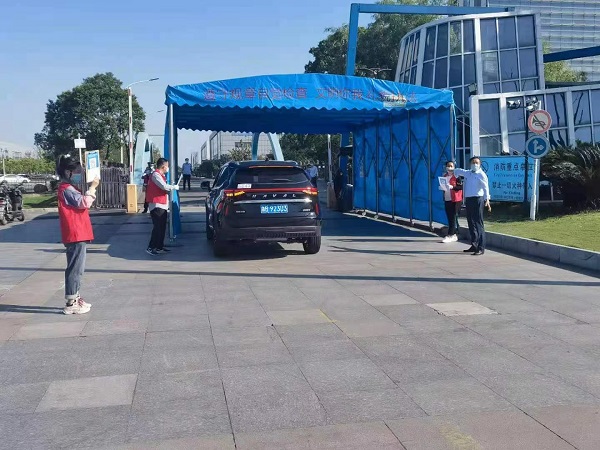 您好,請(qǐng)您掃描場(chǎng)所碼,感謝配合。”“前面的車(chē)輛掃描完之后請(qǐng)盡快離開(kāi),謝謝!”在工業(yè)園區(qū)入口,志愿者和經(jīng)警隊(duì)員各司其職、有條不紊地開(kāi)展工作。在大家的配合下,進(jìn)出車(chē)輛有序掃碼離開(kāi),確保了道路暢通,避免車(chē)輛擁堵。