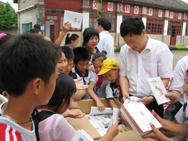 原來為了讓民工子弟學(xué)校的學(xué)生們過一個(gè)開心的暑假,不再為下個(gè)學(xué)期的學(xué)習(xí)用品發(fā)愁,廣博集團(tuán)黨委特意挑在本學(xué)期末,主動(dòng)為他們送去了包括語文、數(shù)學(xué)等練習(xí)本在內(nèi)價(jià)值10000余元的學(xué)習(xí)用品。