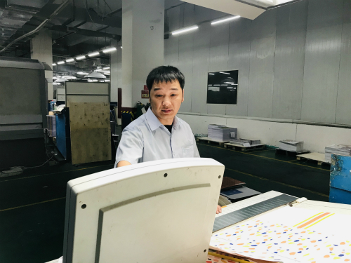 沈賢穎有個習(xí)慣,每一批次的產(chǎn)品他都要檢查一次,“哪怕只印了50張也一樣?!鄙蛸t穎的組長曾勝峰說,拿到訂單后他會仔細核對信息,印刷完成后,他就會把有色差、有瑕疵、尺寸不對的都做好記號,然后立刻補印。“也不能等到一批產(chǎn)品全部完成后再補印,那樣就得重新校色、校版,既浪費時間又浪費原料。”沈賢穎說,自己有一個原則,就是“今日事今日畢”,絕對不能把問題拖到第二天,有時候,哪怕一天的工作量已經(jīng)完成了,但碰到印出了不良品了,他還是會加班加點把補印的工作做好。