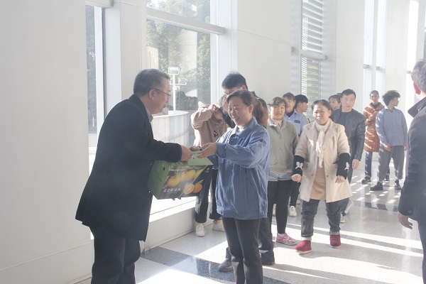 最后,工會(huì)呂主席、吳主任一行向在場(chǎng)所有工人們送去了水果禮盒,希望他們能過(guò)一個(gè)幸福甜蜜的新年。