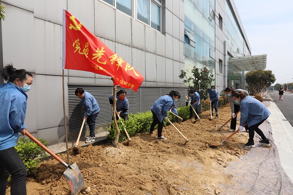 挖坑、搬運(yùn)、填土……火熱的勞動(dòng)現(xiàn)場(chǎng)成為春風(fēng)暖陽下一道美麗的風(fēng)景,并為公司增添了生機(jī)盎然。在黨委書記王利平帶領(lǐng)下,大家勞動(dòng)精神飽滿,氣氛熱火朝天,最后還紛紛拿出手機(jī)與自己的“戰(zhàn)友”合影留念。