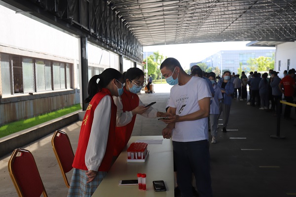 在廣博行政大樓、廣博智能倉(cāng)以及工業(yè)園區(qū)食堂三個(gè)核酸采樣服務(wù)工作點(diǎn),現(xiàn)場(chǎng)參與核酸檢測(cè)的員工隊(duì)列整齊,志愿者們則引導(dǎo)大家掃碼錄入個(gè)人信息,認(rèn)真細(xì)致,一絲不茍,儼然已是抗擊疫情不可或缺的一股力量。