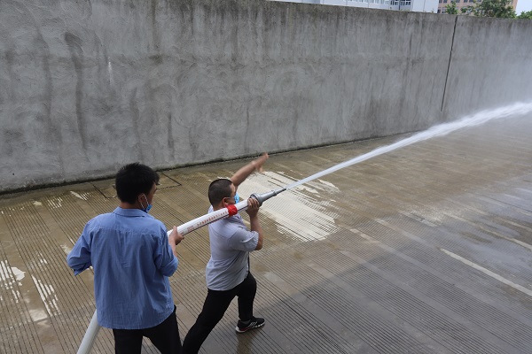 此次競賽圍繞“遵守安全生產(chǎn)法,當好第一責任人”開展活動,設立5人組競速比賽,包含滅火器正確使用滅火,團隊水帶連接出水打靶兩個項目。下午亮點,經(jīng)警隊長宣布消防應急演練競賽開始,來自各車間、倉庫等部門10余支代表隊、50余名隊員分批投入到緊張的比賽當中。