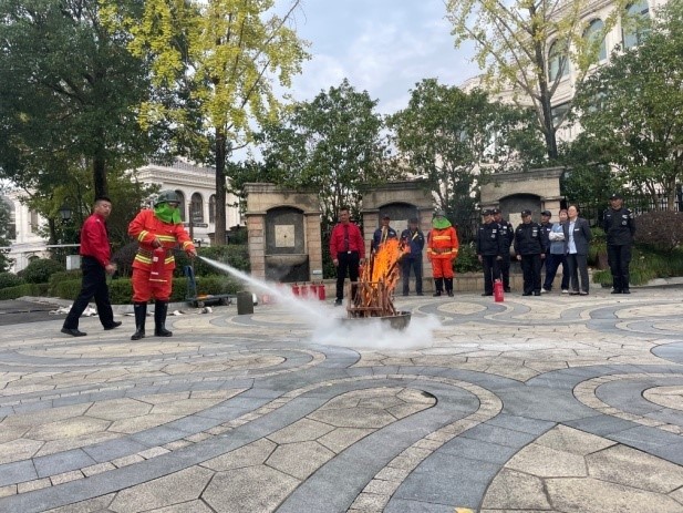 在集團(tuán)公司帶領(lǐng)下,控股物業(yè)公司也積極響應(yīng)號召。廣博國貿(mào)物業(yè)服務(wù)中心于10月20日在國貿(mào)中心打響消防培訓(xùn)第一仗,并邀請了首南街道應(yīng)急管理所領(lǐng)導(dǎo),應(yīng)急管理所主任蒞臨現(xiàn)場并由專業(yè)消防單位進(jìn)行專業(yè)培訓(xùn),在首南街道和樓宇業(yè)主大力支持下,消防培訓(xùn)圓滿完成,得到業(yè)主和租戶的一致好評!11月3日廣博麗景中心大廈在管委會警務(wù)協(xié)調(diào)下組織開展了一次別開生面的實(shí)戰(zhàn)消防演練,消防演習(xí)按照預(yù)定方案,有序進(jìn)行,實(shí)戰(zhàn)消防演練的目的是為了讓大家深刻了解初期火災(zāi)撲救的重要性,知道如何正確撲滅初期火災(zāi)、疏散人員、正確使用消防器材等。11月5日東錢湖御景灣項(xiàng)目對所有員工進(jìn)行了一次消防實(shí)操演練,讓參與演練的人員親自體會如何正確的使用滅火器滅火,消防實(shí)操演練在緊張、有序中圓滿完成。