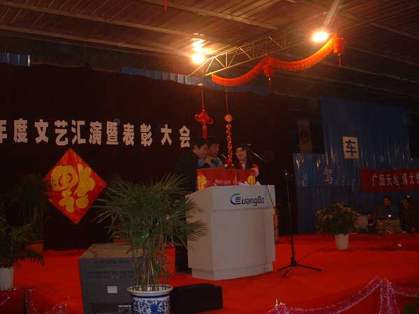 靈羊辭舊歲,金猴鬧新春。2月19日,廣博集團(tuán)公司組織了2003年度文藝匯演暨表彰大會(huì),這是集團(tuán)公司給公司全體員工的一份新年大禮,會(huì)場(chǎng)四周張燈結(jié)彩,獎(jiǎng)品整整圍了舞臺(tái)一圈,會(huì)場(chǎng)是一片喜慶……